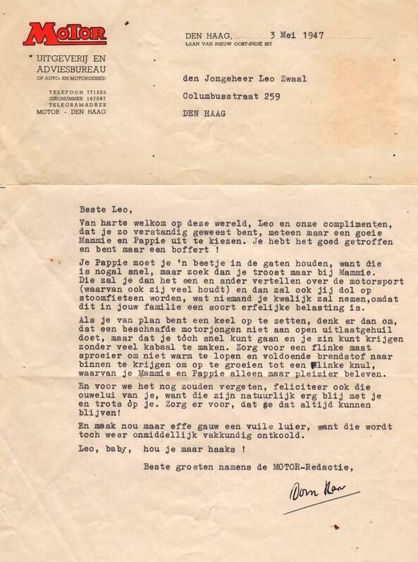 Als zoon van een "Haagsche" motorhandelaar, die zelf ook aan wegracen deed,